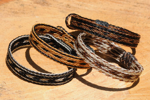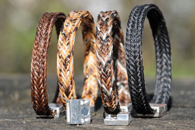 Beispielbilder von aus eigenem Schweifhaar angefertigten Schmuckstücken (mit Richtpreisen und Anzahl benötigter Haare) |