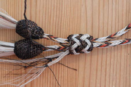 ... oder knoten ...(hier ein Herringbone Knoten über einer Ledermanschette als Schiebeknoten)